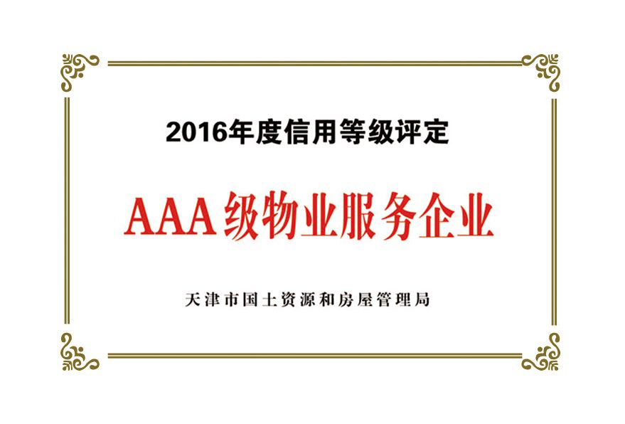榮譽資質(zhì):天津市首批AAA級物業(yè)企業(yè)